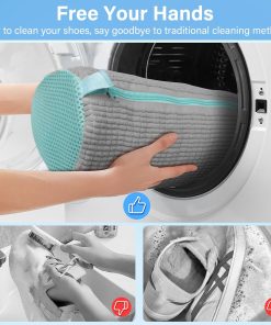 تخيل تغسل جزمتك من غير ما توسّخ إيدك، ولا تقلق إنها تتخرب في الغسالة. أول ما تحطها في الحقيبة وتسمع صوت الغسالة شغالة، تبقى مطمن إن الحذاء بيتنظف تمام من غير ما يتخدش أو يتبهدل. والنتيجة؟ جزمة نضيفة، ريحتها حلوة، وشكلها جديد من تاني.
