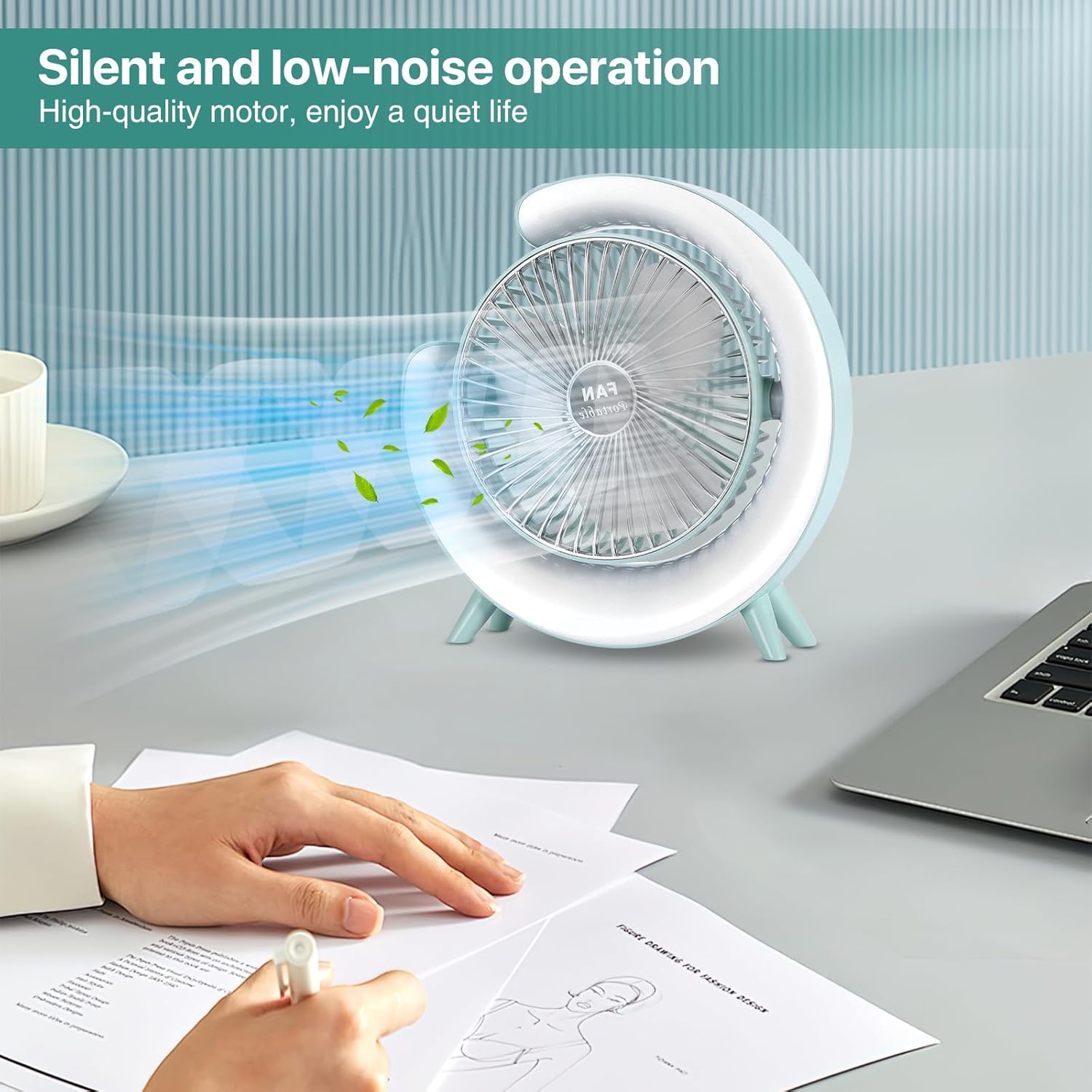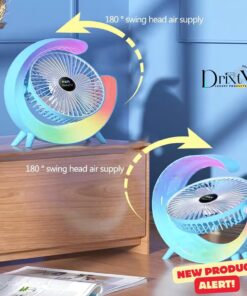 لو بتدور على راحة في الجو الحر وفي نفس الوقت لمسة إضاءة شيك، المروحة دي هتكون صديقك المثالي للمكتب، أو الأوضة، أو حتى في الرحلات!